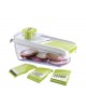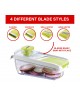 Use the Brentwood KA-5040G Mandolin Slicer with 5-Cup Storage Container and 4 Interchangeable Stainless Steel Blades for effortless food prep. Includes julienne, mandolin, small grater, and large grater stainless steel blades. Sliced and shredded food falls right into the 5-cup storage container. Cleaning comb included for easy cleanup.