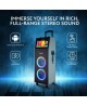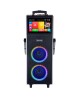 The KB-2100R Karaoke Machine integrates a 14.1" touchscreen Android tablet with HDMI output for an enhanced user interface and display options. Running on Android Version 12, it features innovative WaveSync™ technology and dual 10" woofers for dynamic sound quality. The machine includes voice modulation and sound effect buttons like applaud and laugh, alongside comprehensive controls for volume, treble, and bass. It supports multiple connectivity options such as Bluetooth, USB, and AUX, and comes with sound-activated lights, two UHF wireless microphones, and a remote control. Portable with a built-in 7000mAh battery, it's equipped with wheels and a handle for easy transportation.