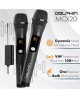 - Receiver fits into a 1/4” jack and supports both microphones