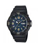 If you're searching for great value in a classic diver-look watch, look no further than the MRW200 from Casio. Its 44.6mm face and large indexes provide at-a-glance information. Couple this with a bi-directional rotating bezel and 100 meter water resistance and you've got a timepiece that's easy-to-read, simple-to-use and durable. Black resin band analog watch with a black face.