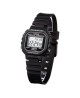 New petit ladies digital with molded resin band for a comfortable fit. Stopwatch, alarm and 5 year battery provide function and longevity. Black resin band digital watch with a black face.