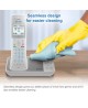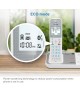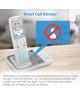 With the industry's first cordless phone using antibacterial plastic, the AT&T DAL75211 DECT 6.0 2-Handset Expandable Cordless Phone featuring, Bluetooth Connect to Cell and Smart Call Blocker, you won't have to worry about spreading germs when using this phone system because the plastic is lab tested to inhibit 99% of bacteria growth. Also, the seamless and smooth handset and base design makes cleaning and disinfecting easier while also reducing dirt and germ crevice's. With the Smart Call Blocker, robocalls are automatically blocked from ever ringing through—even the first time. You can also permanently blacklist any number you want with one touch. Bluetooth Connect to Cell technology on the AT&T DAL75211 DECT 6.0 Expandable Cordless Phone lets you receive cell and/or landline calls from one home phone system. With a touch of a button, enjoy the high-tech benefits your smart phone offers. Even if your smart phone is in a different room, you can still access Siri or Google Now from the cordless handsets. Place a call, write or read a text and perform all the other actions these services offer.
